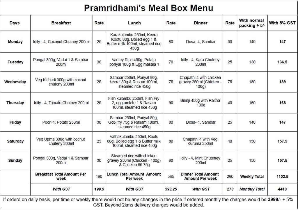 Affordable, hygienic home-style meals delivered daily across Chennai.